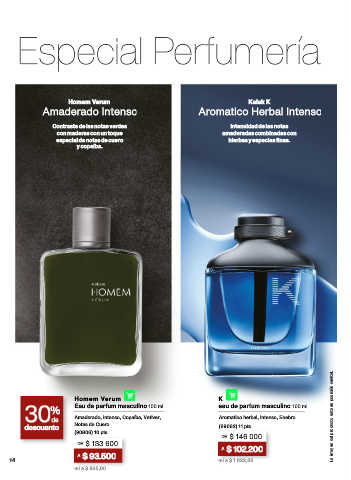 30de Amaderado, Intenso, Copaíba, Vetiver, Aromatico herbal, Intenso, Enebro. La imagen del producto esta en posición cenital.
