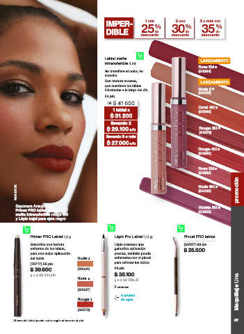 El tono del labial puede variar según el tono de la piel. 47