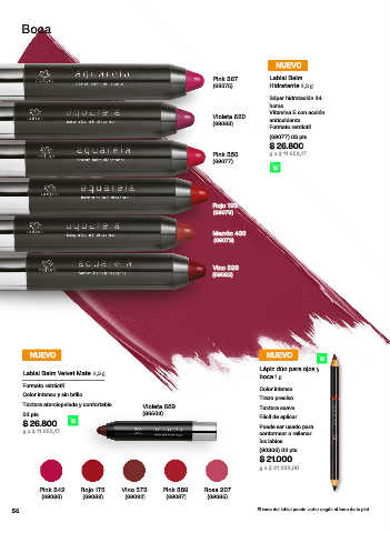 56 El tono del labial puede variar según el tono de la piel.